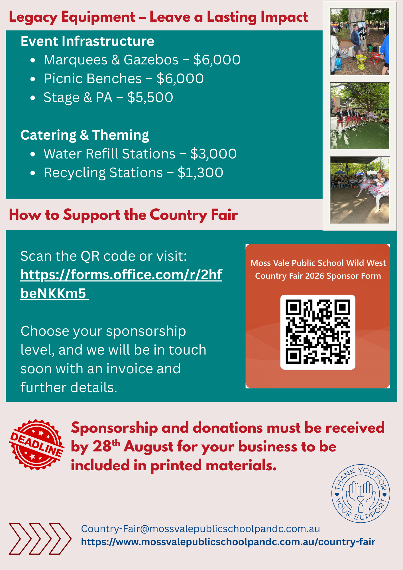 While you’re here, take a look at highlights from our previous Country Fairs and meet the incredible sponsors who’ve helped bring the magic to life. Their generous support has made a real difference to Moss Vale Public School, and we’re so proud of the strong community spirit that makes this event so special year after year.